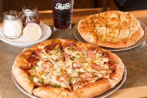 “Both restaurants started with five tables and take out … and in those days you would stretch the [dough] and flip it in the air. The story goes that it was getting to the point where customers were not leaving. They would eat and sit around and watch and there was a lineup for people to come in to eat and they wouldn’t leave the tables,” says “Big” George, “So they put up a glass partition so you couldn’t see them stretching pizza anymore so the customers could eat and go and they could turn around tables a little quicker.”