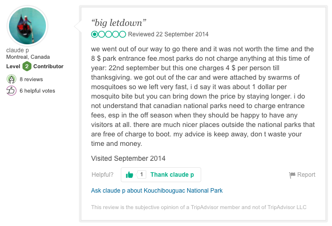 But watch out for the mosquitos. Just ask Claude: