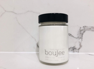 “I am Loving Today, Boujee Candles. Long-burning , soy wax and non-toxic candles. Which are made here in New Brunswick by my fellow interior designer colleague, Emily Vermette.