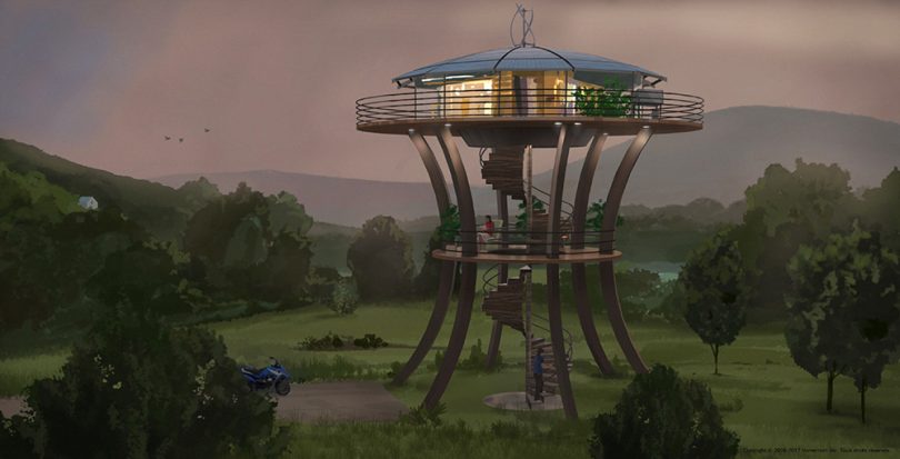 Set about 40 feet above the ground, the 900-square-foot spherical home would provide a 360-degree view of the surrounding area. The anti-flood design, which includes one or two bedrooms, a greenhouse next to the kitchen and a balcony, means the house will take up less ground space.