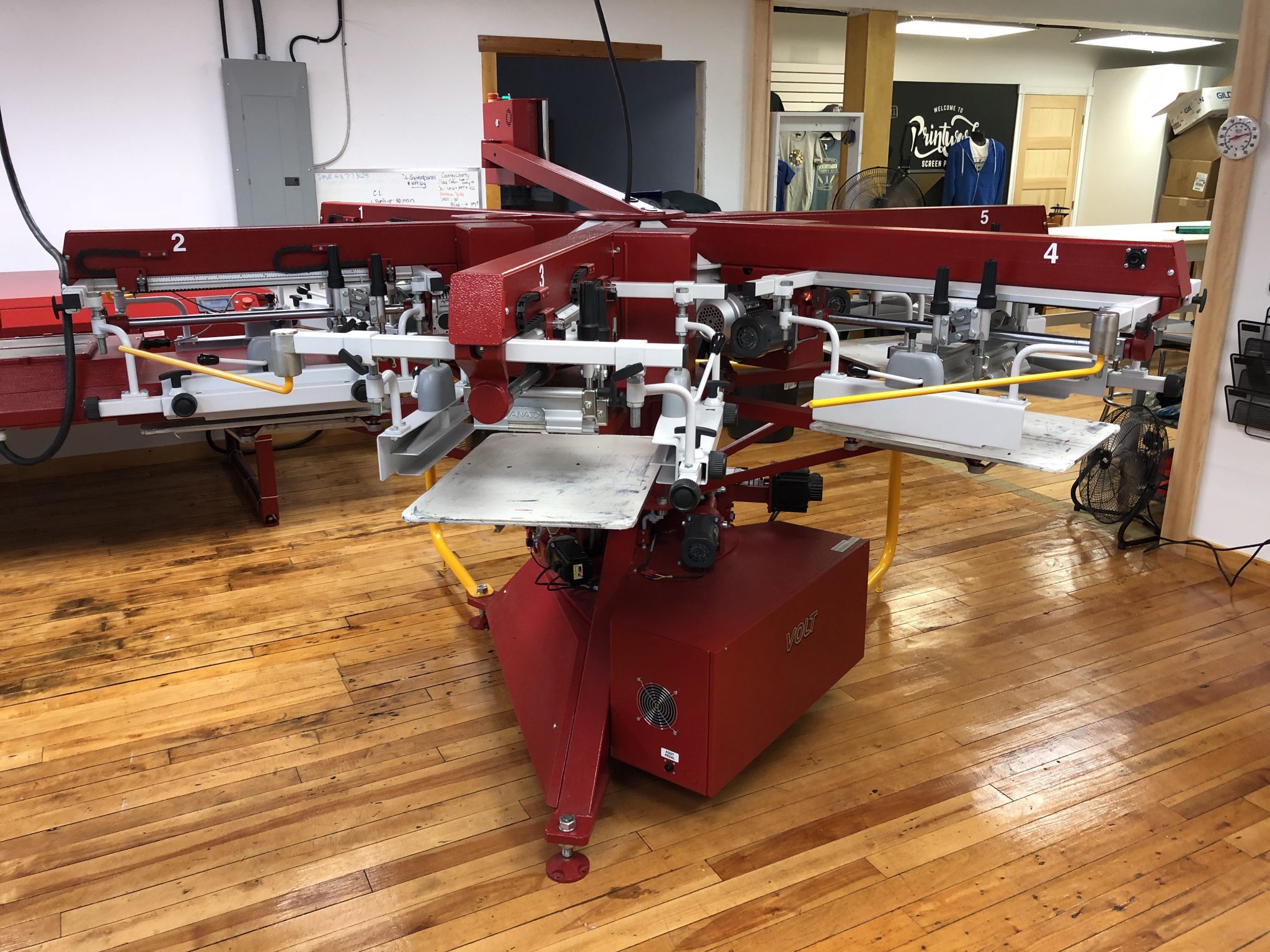 The new press allows Printworks to increase its capacity up to 30x and makes the overall screenprinting process less manual.