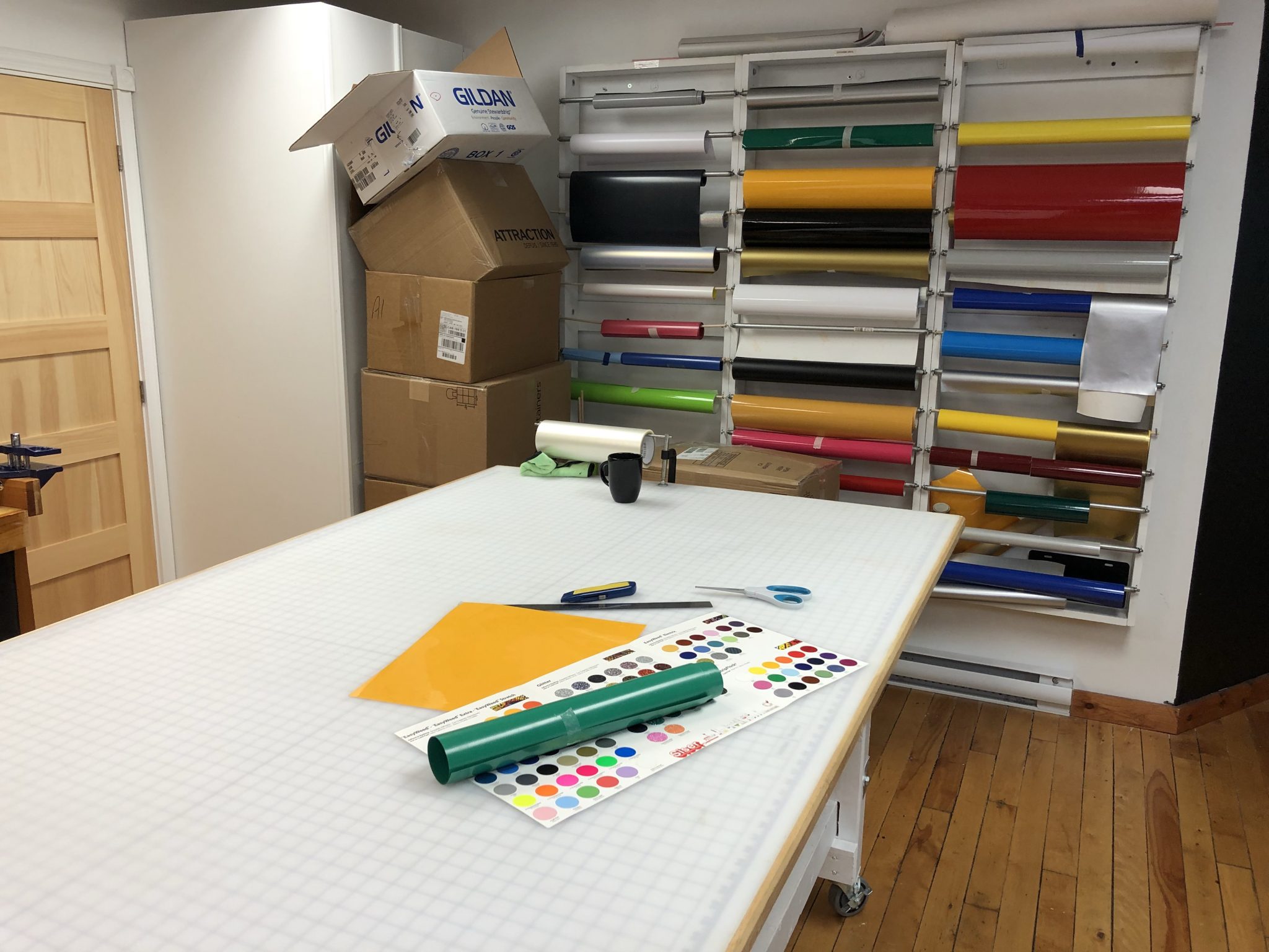 We’re on the second floor. We’re above the Estey Group. We share a space with them. They do embroidery, sail, and canvas repair next door. They have some really cool, old-school sewing going on over there.