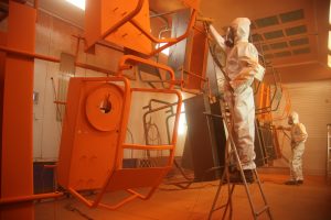 “We have our own equipment here that processes the metal. We bring raw metal steel into the factory. We buy our steel mostly in Canada, but our pipe we import from Turkey and stainless steel from Asia,” says Howland. “We then cut it and bend it into different shapes and forms and we weld it and we paint it. We have over 300 frames that we build for different applications.”