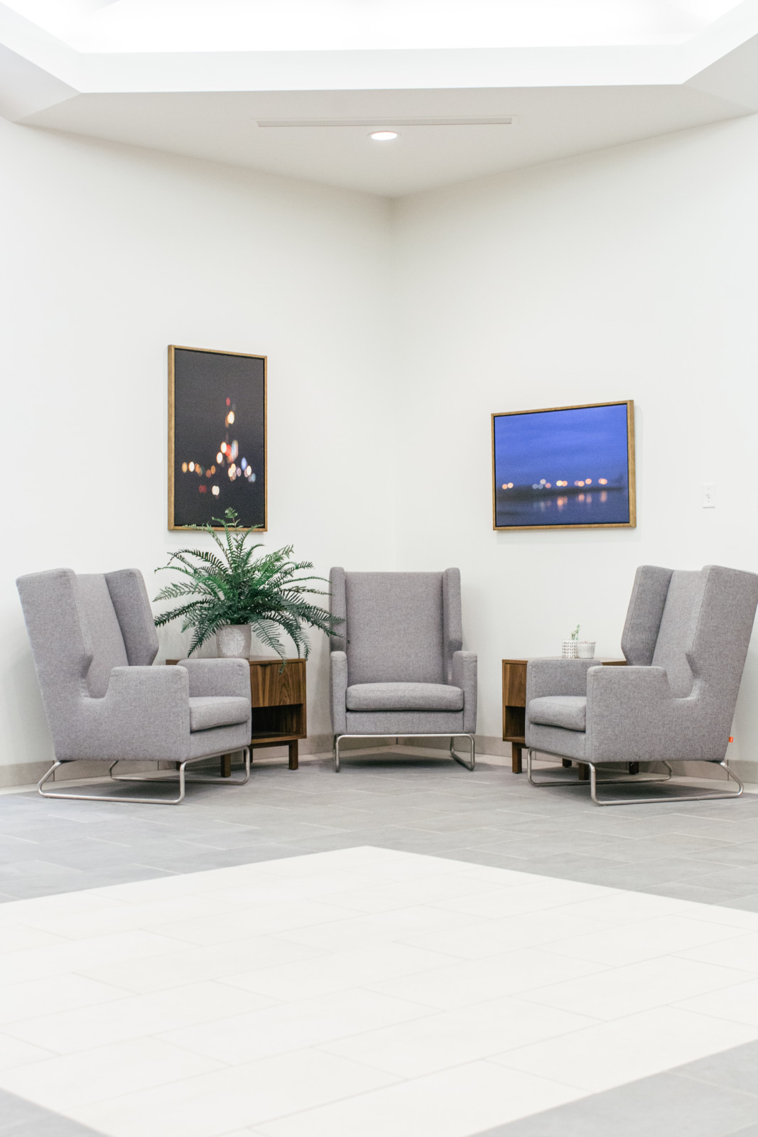 “We wanted to have a very modern funeral home, something that’s not the norm. When people think of funeral homes, they’ve maybe had a different perception of what we are right now,” says Daigle. “But I want to look forward to the next 30 years of funeral service. I’ve been to Tuck Studio many times. I like Judith’s design and I thought she would be the best person for the design of the funeral home.”