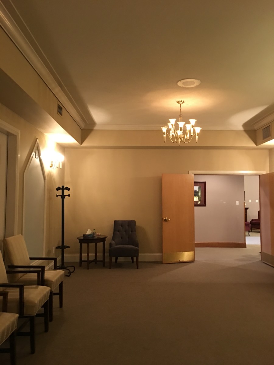 The funeral home’s foyer, chapel, reception, salon rooms, and offices all got a major facelift. For Mackin, Fundy Funeral Home was a type of client she never had before.
