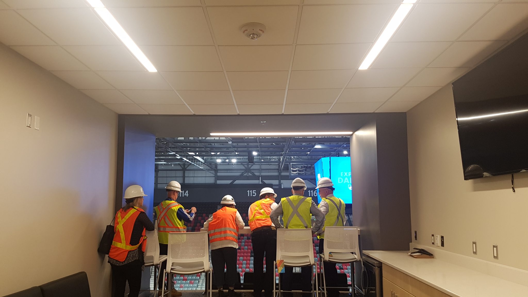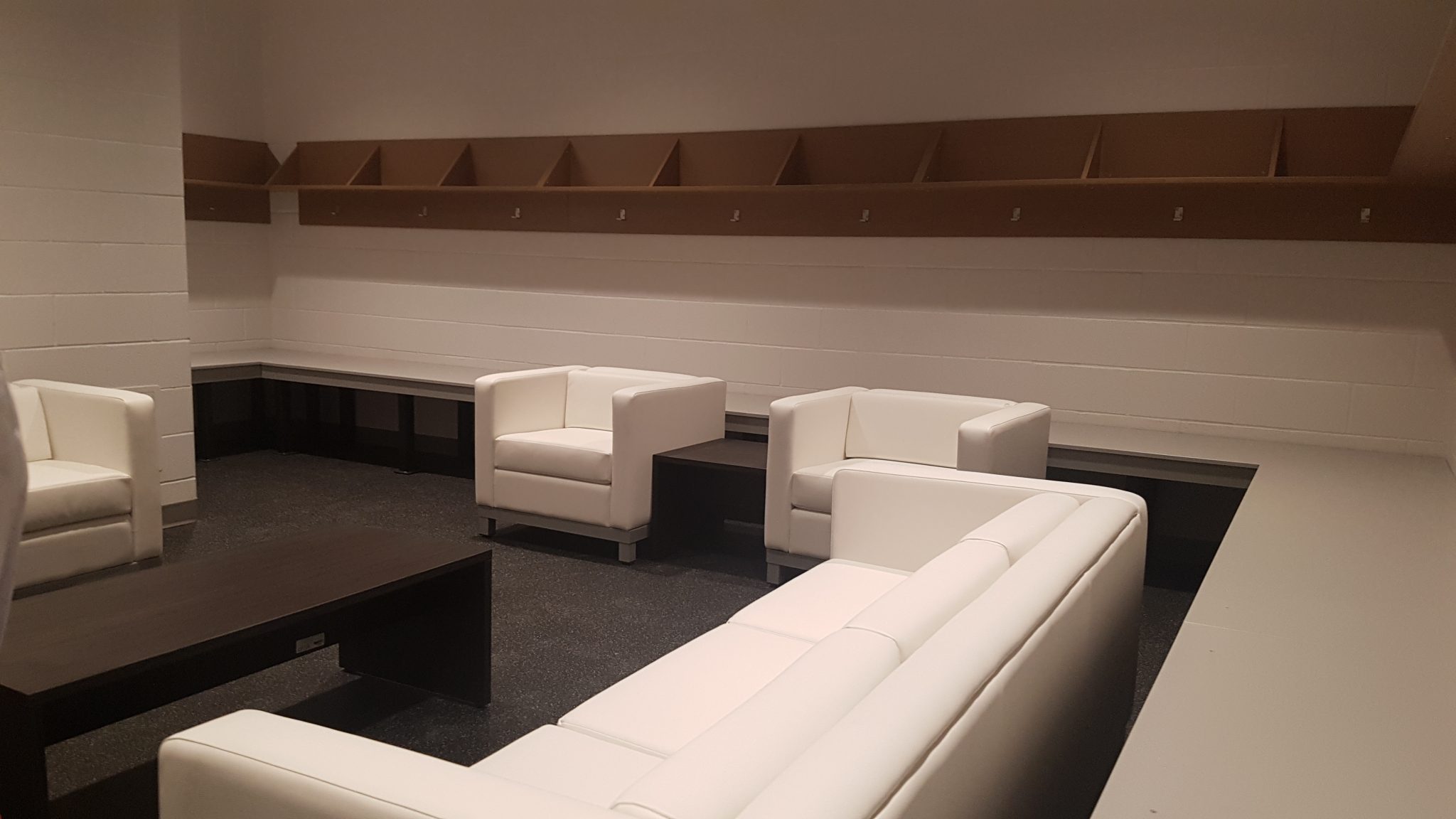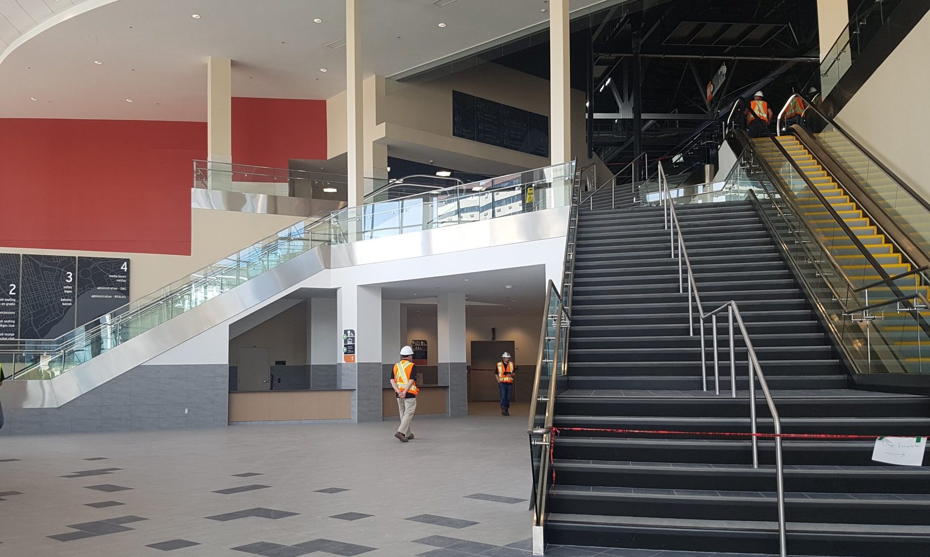 There is also a community room that can be rented by members of the public with a door to the plaza outside. A kitchen that could serve 900 plates, rooms for performers and athletes, and a VIP lounge can also be found inside, among other facilities.