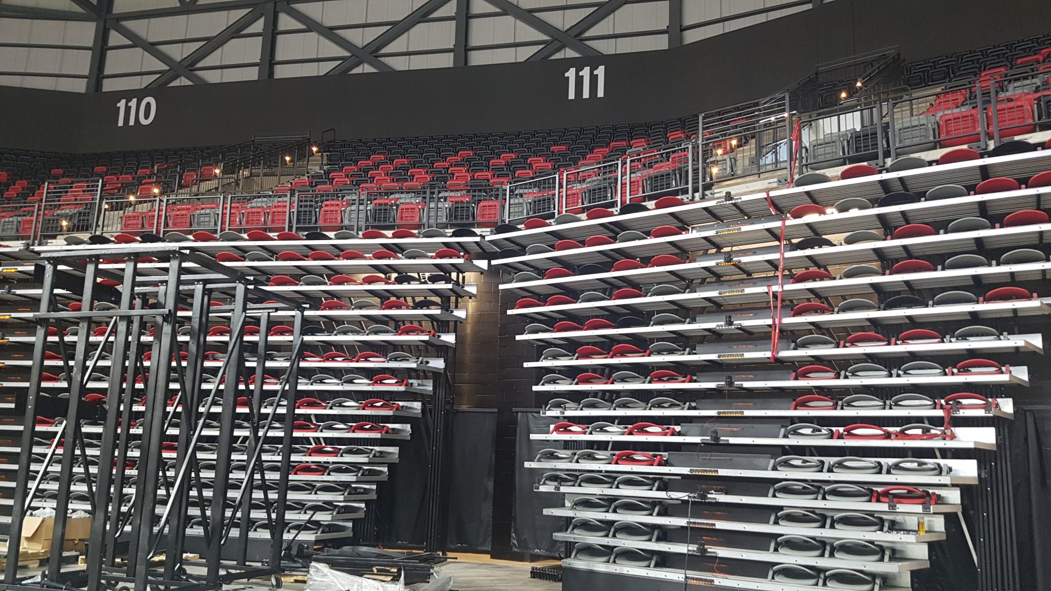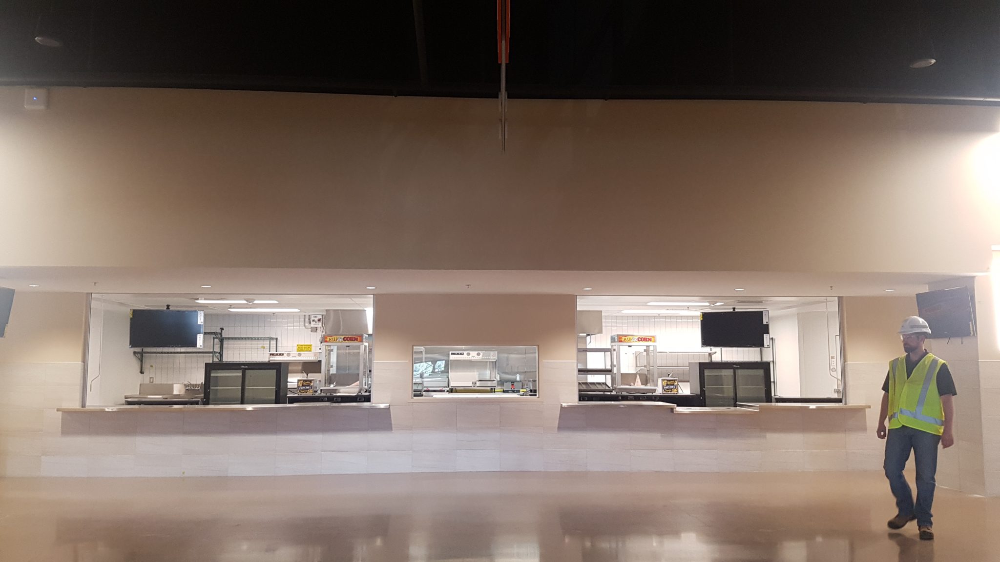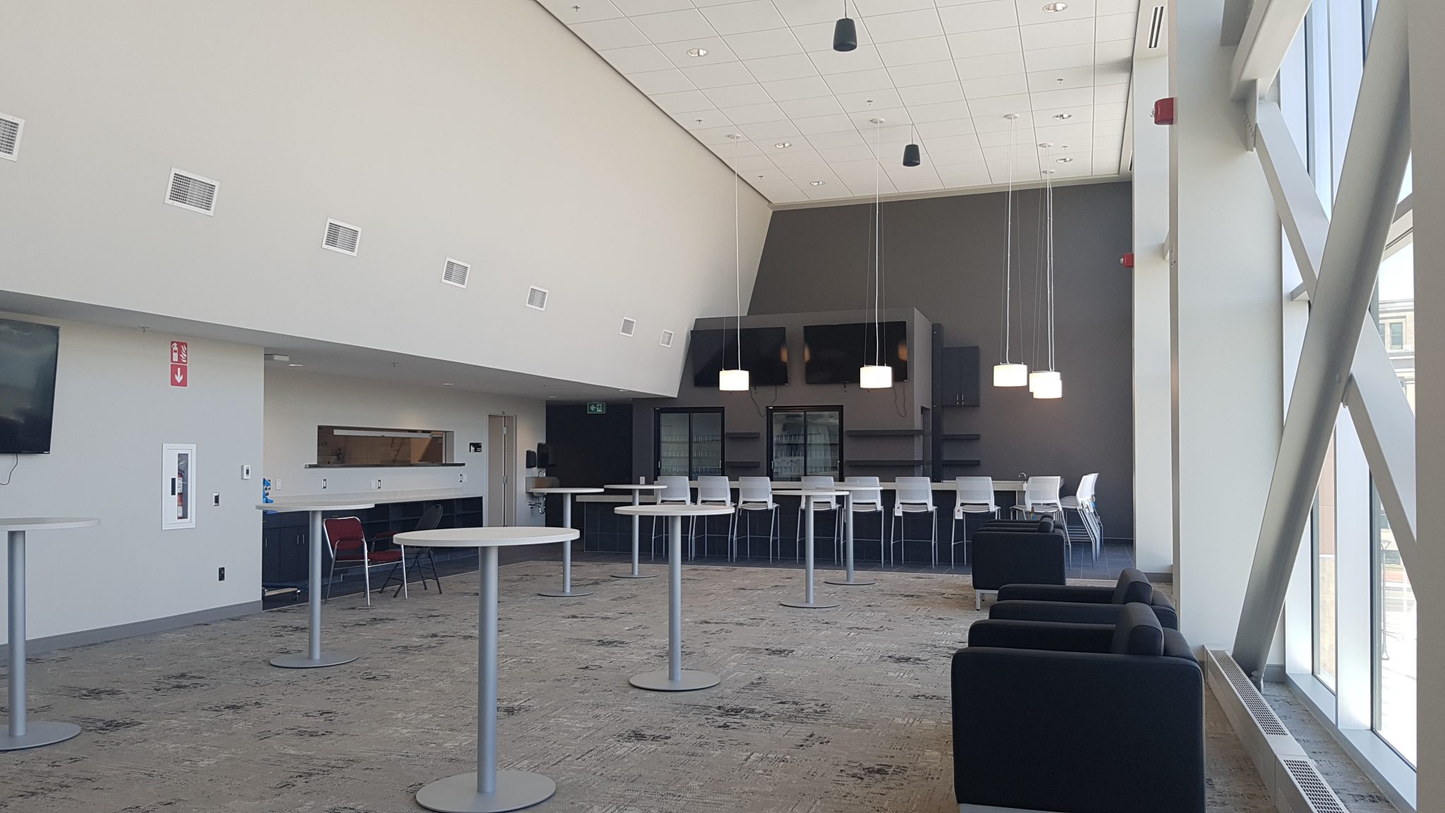 There is also a community room that can be rented by members of the public with a door to the plaza outside. A kitchen that could serve 900 plates, rooms for performers and athletes, and a VIP lounge can also be found inside, among other facilities.