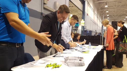 It was a tense morning at the Moncton Coliseum. Half an hour past the scheduled attempt to break the Guinness World Record for the Largest Networking Event, organizer Hub City Young Professionals Network (HCYP) was still short on people. The organizers called on participants to invite their friends and family, and the attempt eventually started at 10.14 a.m.