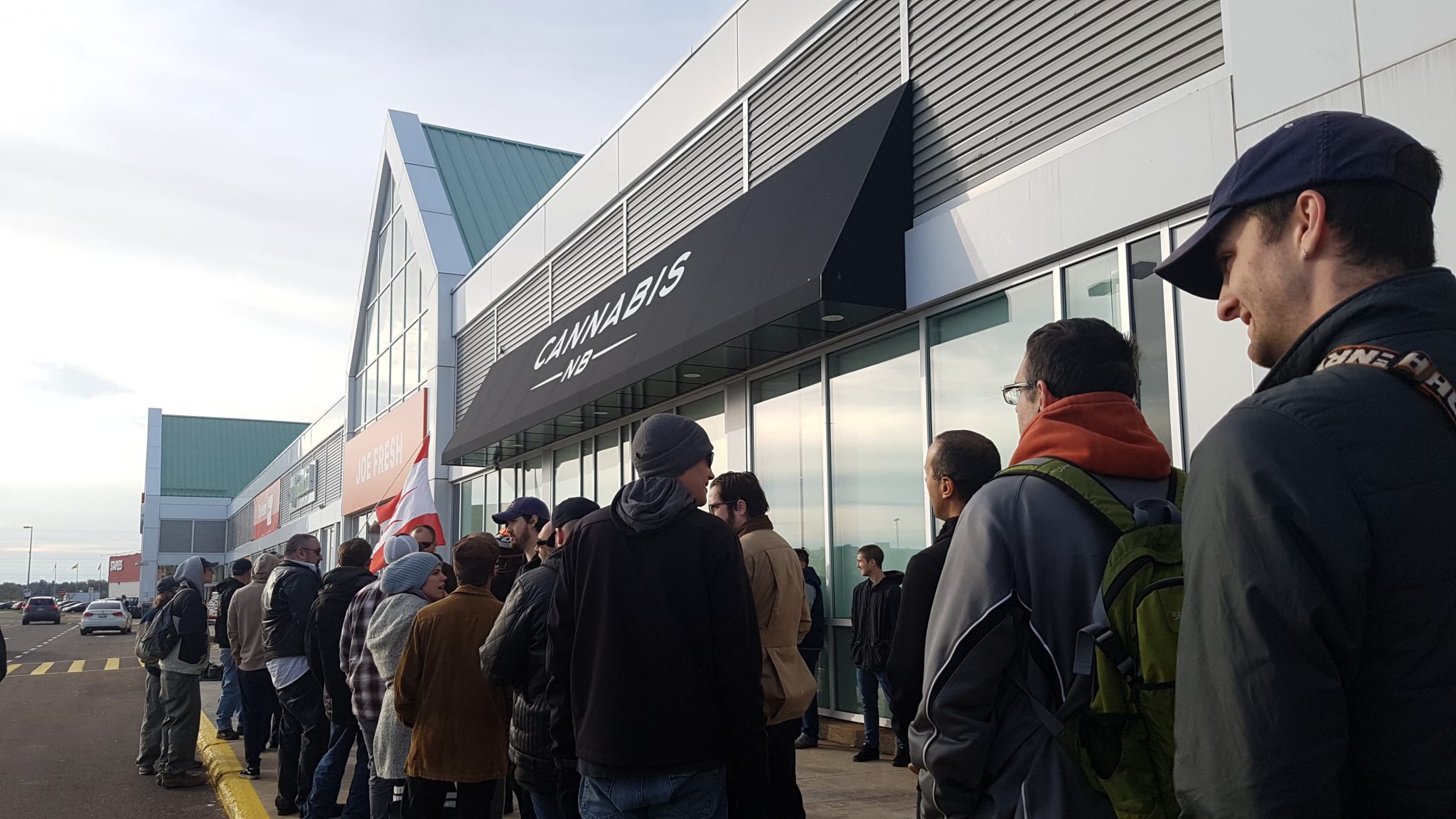 MONCTON – Half an hour before Cannabis NB at 165 Main St., Moncton, opened its doors at 10 am Wednesday, more than 50 people were already lining up outside the door. One man had been there since 5.30 am and was the first customer to enter the store. Others just came out to see what the experience will be like.