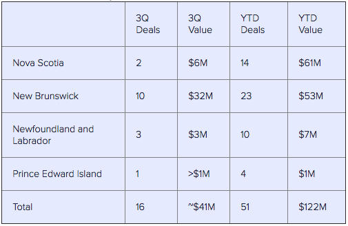 The Canadian Venture Capital Association on Monday released its funding data for the third quarter, which said the region booked about $41 million in 16 VC deals. The big news was that New Brunswick, which had a slow year in funding in 2017, led the pack in July to September of this year with 10 deals worth $32 million.