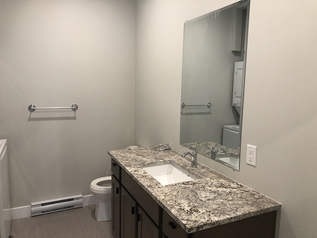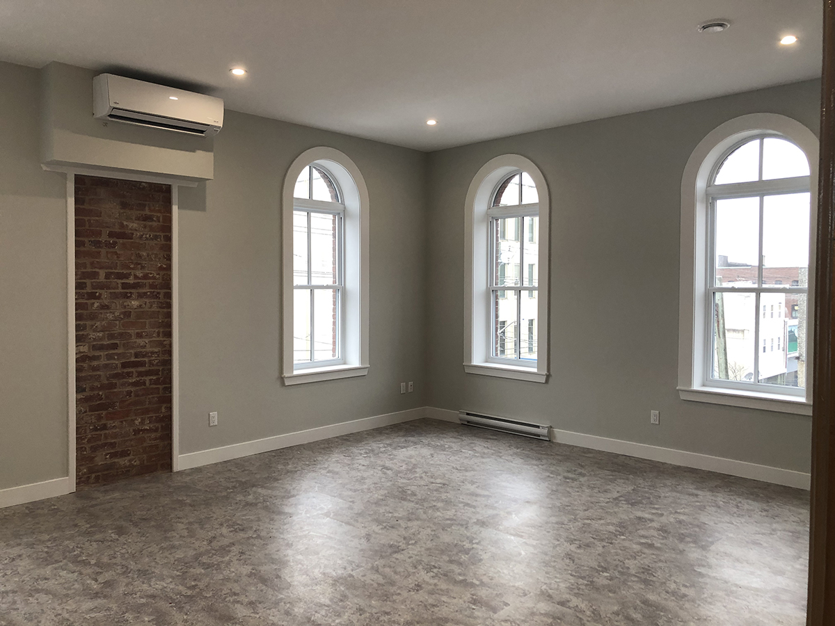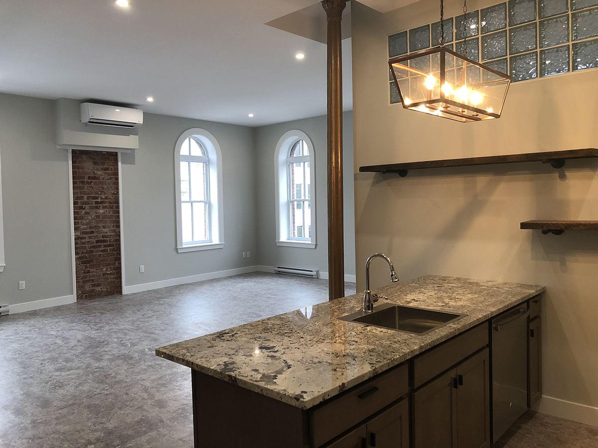 The residential units include three two-bedrooms apartments and one one-bedroom. They are open-concept with marble counter-tops and new appliances, including washer and dryers. They are heated and cooled by heat pumps and auxiliary heat. The units will be renting for between $1,400 and $1,800 a month, plus utilities.