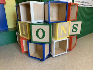 One of his most recent projects was timber installation for the waiting area for the front lobby of Loch Lomond School, featuring giant building blocks, seating, cubby holes, and a colouring table.