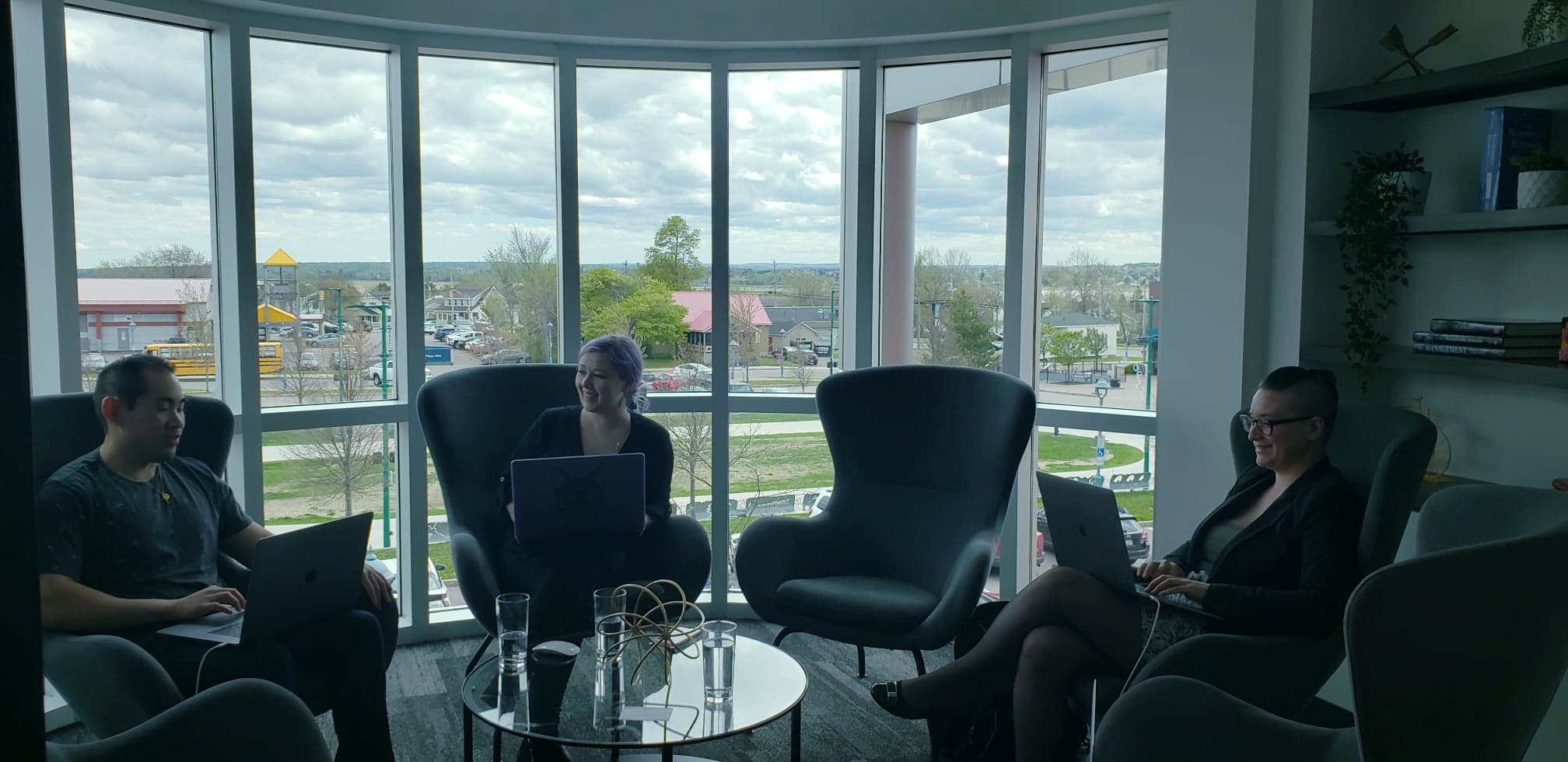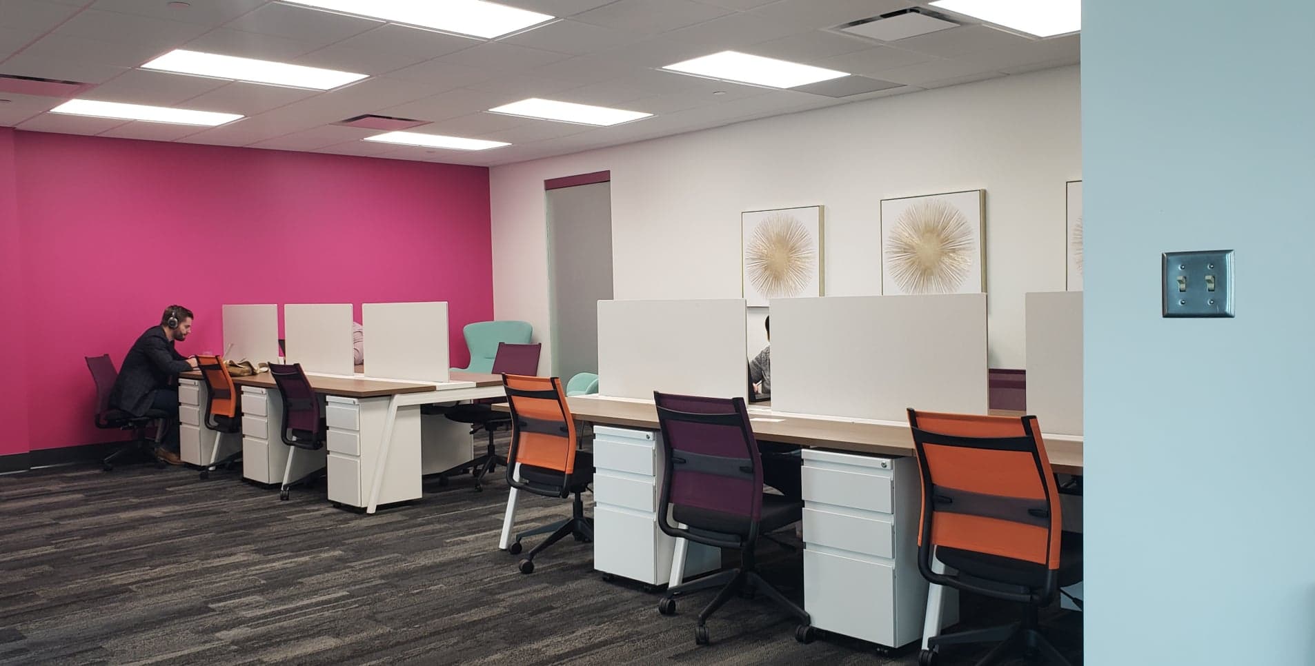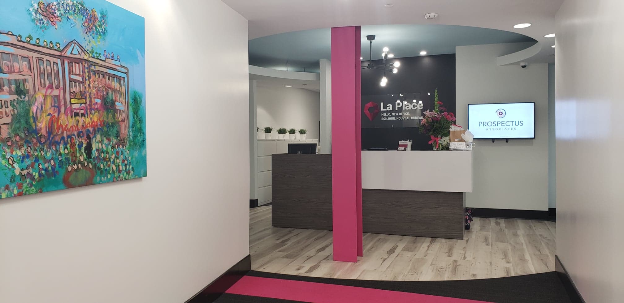 “We had a large office here that we were having a hard time renting to a bigger company, and we kept being approached by people who just needed one office or two offices, or just a smaller area to work. To fit those needs, we just started dividing it into different companies and we found that the demand is very high,” says La Place’s community manager Olivia Steeves.