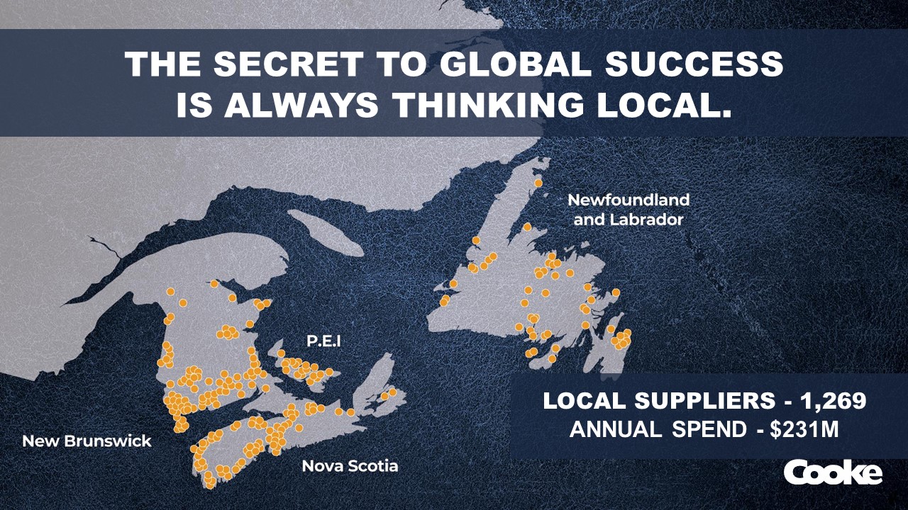 Cooke works with 757 local partners and suppliers from all over New Brunswick and buys goods and services from 1,269 small and medium-sized businesses, spending $231-million per year across Atlantic Canada.