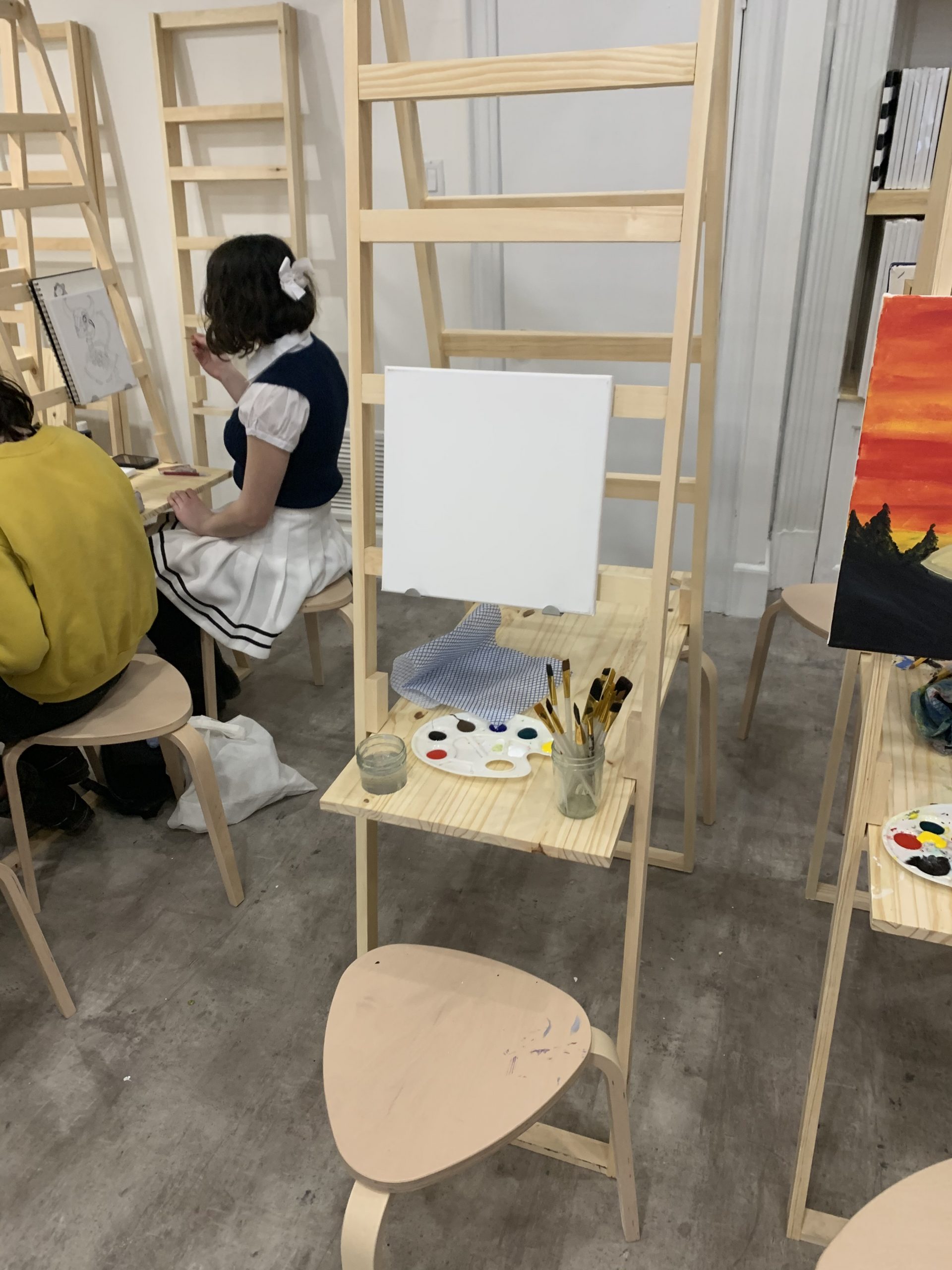 The back of the building was set up with three rows of easels for patrons to sit down and try their hand at becoming the next Picasso, with small, medium, large and “pre-loved” canvases at their disposal. A gaggle of teenagers was busy drawing and painting while chatting among themselves.