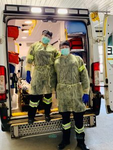 SAINT JOHN – These days, Jeremy Dunsmore and Laura Kaye’s work as primary care paramedics for Ambulance New Brunswick could take them inside the home of a Covid-19 positive patient.
