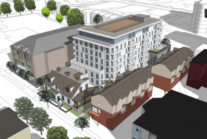 The building would be squeezed between several multi-unit developments on either side of the property, with Stairs House acting as an entryway from South Street.
