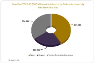 Right now, only $41.4-million of the Dalhousie fund has been spent on Covid relief programs. Another $34.7-million has been set aside for loan guarantees for the tourism and hospitality sector.
