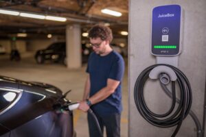 And these charges and not just “a simple plug,” according to Bertolino. The “JuiceBox” charging station has a software platform that makes it a smart charger. It can be set to charge when electricity rates are cheapest, can manage loads, and owners like Killam can give tenants authorization to use it.