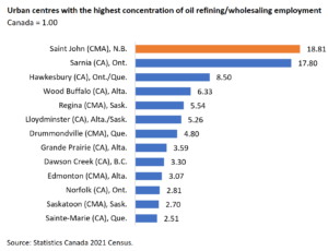 In fact, Saint John is more reliant on this sector than any other urban centre in Canada.