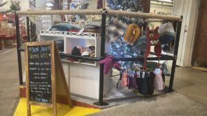 It has a variety of free items to help people stay warm in the winter, such as hats, mitts, scarves, and even sweaters.