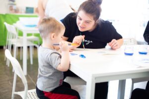 “We teach the parents, we give them ideas on how whatever concept they’re learning, they can extrapolate to their daily life,” she says. “Really, the learning takes place while you’re living life.”